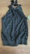 Sleeveless fancy black top, fully lined in the front, sheer on the back with satin tie and bottom elastic. Smoke/pet free home.