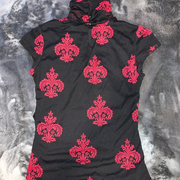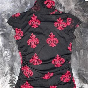 Black top with red design, two layers, nylon and polyester