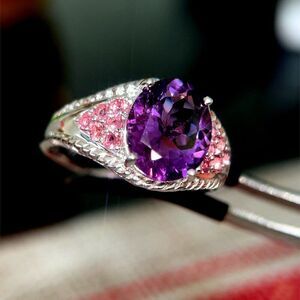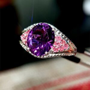 Fancy Amethyst/Pink Stones Silver 925 Ring