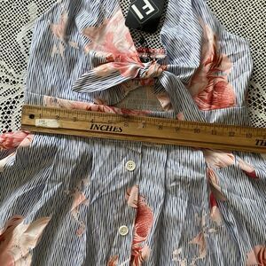 FancyInn Halter Dress Size M Mini Cutout Sleeveless White Blue Striped Floral