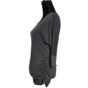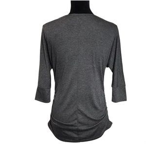 FancyQube 3/4 Sleeve Ruched Top in Dark Gray - Size Large