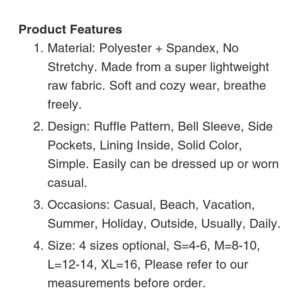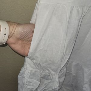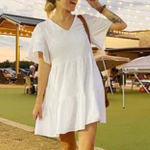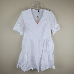 Fancyinn Dress Womens XS White V-Neck Ruffle Pockets Bell Sleeve Tiered Mini NWT