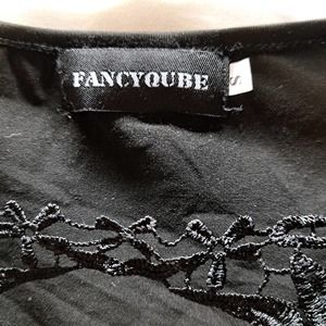 Fancyqube Black Sexy Feminine Sleeveless Tank Top Cut Out Floral Lace design. Pull Over. Casual or Dressy.