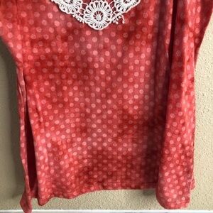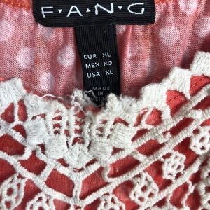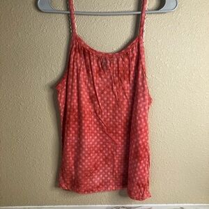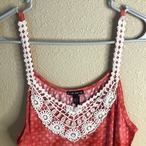 Fang coral and white tank top with crochet accents polkadot pattern women’s size extra large good preowned condition