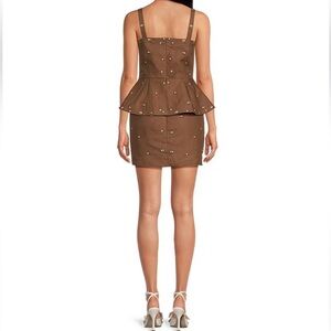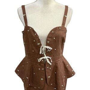 Fanm Mon Helaina Floral Embroidered Bow Front Sweetheart Neck Peplum Mini Dress
