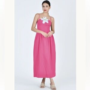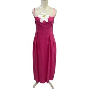 Fanm Mon LORR LINEN LATRICE DRESS Fuchsia Flower Embroidered Pleats Pockets $389