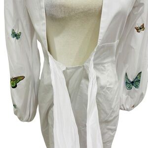 Fanm Mon Larson Butterfly Embroidered Long Sleeve V Neckline Mini Dress NEW $359