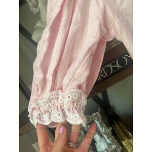 Fanm Mon Leton Embroidered Linen Mini Dress Light Pink Womens Size Small