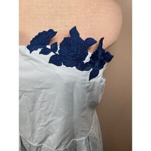 Fanm Mon Lorr Strapless Floral Embroidered Light Lagoon Blue Midi Dress Size XL