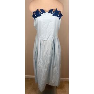 Fanm Mon Lorr Strapless Floral Embroidered Light Lagoon Blue Midi Dress Size XL is brand new with tags!