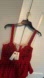 Chic red midi dress with floral accents. Features a stylish peplum design. Ideal for elegant occasions.