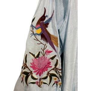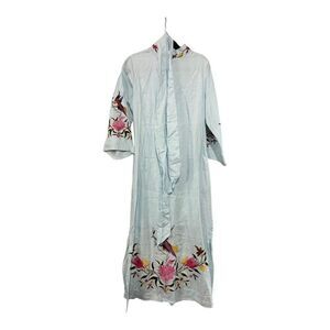 Add a touch of luxury to your wardrobe with this stunning Fanm Mon Asia Embroidered Maxi Dress! This beautiful blue dress in size medium features exquisite floral embroidery throughout, making it a true statement piece.