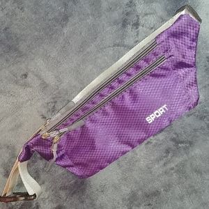 Everyone's favorite guache fashion trend next the crocs. The fanny pack! Dark purple. Great for carrying your necessities when you go for a jog or run. Lightweight.