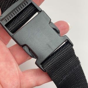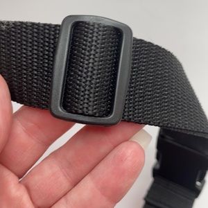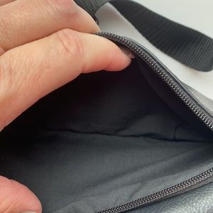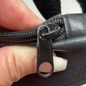 This Fanny pack is used but in good condition, adjustable waist belt, easy clasp, 3 zip sections, nice spacious bag. This uni-sex Fanny pack has s couple very minor flaws see pictures (chipping on zipper pulls and small scratch) in no way do these minor imperfections impact the quality of this bag.