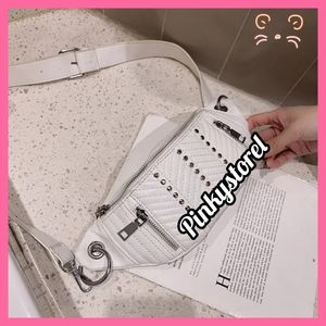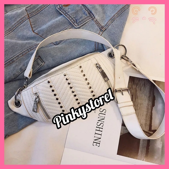 *Feature: rivet stud detail / no inside partitions / 1 smaller zipper compartment inside / 1 detachable adjustable shoulder strap (shortest length: 31'' / longest length: 34.5'')