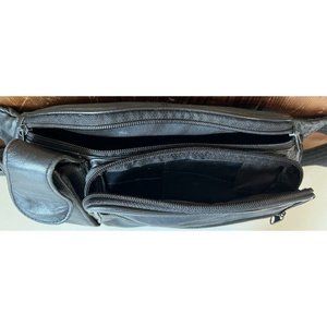 This stylish waist bag is perfect for travel enthusiasts. It is a unisex, medium-sized bag made of black leather, and features a zip closure and nylon strap. The lightweight bag is equipped with pockets for easy storage, making it a convenient accessory for any travel occasion. The bag's solid pattern and travel theme add to its charm, making it an ideal choice for people who love to explore. The bag is a perfect blend of functionality and style, making it a must-have for anyone who wants to travel light. Pre-Owned (See pictures for item condition details).