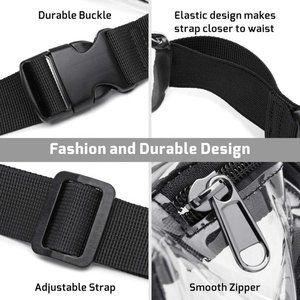 PVC Waist Bag Free your Hands: 0.5mm PVC clear fanny pack for women, is the high-quality clear plastic, waterproof and BPA FREE, is safe to stay at your side; wearing this