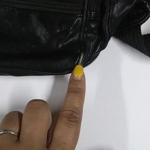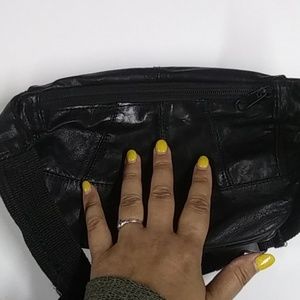 A WELL LOVED fanny pack. Leather texture ( do not k oe of its real) as real dad vibes. Pics taken of the well loved spotd. 3 poxketa in the. Front, one in the back. All zippers work, inside decently clean. 6 inches long 9 in wide