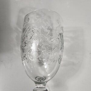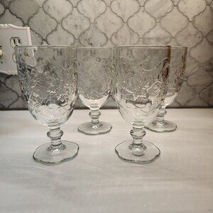 Vintage Princess House Fantasia Footed Ice Tea or Water goblets, 6 7/8" tall, scalloped base. Set of 4, new in original box. Box is shopworn, but secure and will be shipped inside another box. Can not be bundled due to weight.
