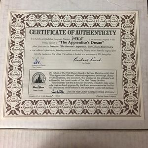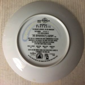 This is a Mickey Mouse, Fantasia; The Sorcerer’s Apprentice collectors plate. Golden anniversary first issue. Certificate of authenticity. Original packaging. Smoke free home.
