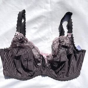 Fantasie Simone Side Support Bra 36G Brown Pinstripe Pink Underwire FL2302