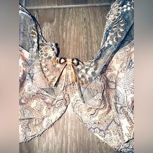 * Design: Paisley print on cups, lace or trim along the top edge of cups