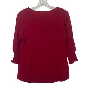 This women's blouse from Fantaslook features a stylish red hue, ideal for adding a touch of elegance to your wardrobe. The 3/4 sleeves with smocked cuffs add a unique detail, while the polyester-spandex blend ensures a comfortable fit. A versatile piece that can be dressed up or down depending on the occasion.