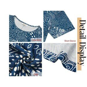 Features: Casual and dressy options; round-neck, short sleeves; flare, loose fit; covers belly and hips; flared hem for a flattering look.