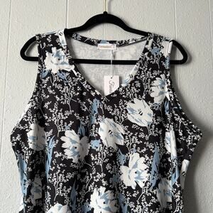 Fantaslook women's top. V-neck. Sleeveless. Side slits. Stretch. Dark floral. New with tags in excellent condition. No stains, tears or holes.