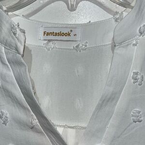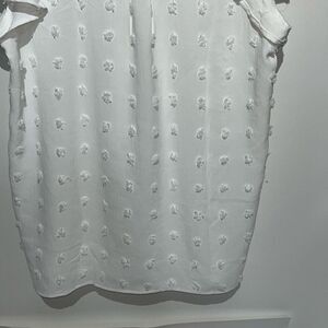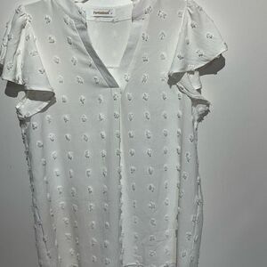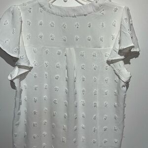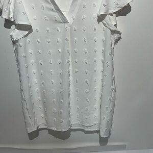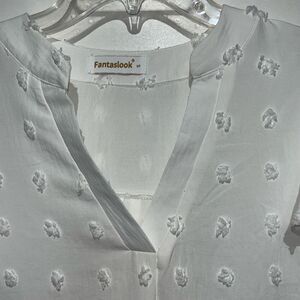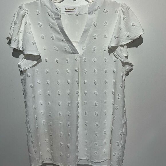 Fantaslook Women's White Swiss Dot V-Neck Flutter Short Sleeve Blouse Size Small