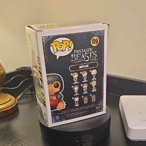collectible figure featuring a Niffler from Fantastic Beasts. Vibrant black and orange design.