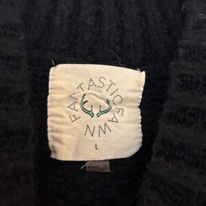 Fantastic Fawn Black Colorblock Stripe Mock Neck Fuzzy Sweater. Knit, mock neck sweater. Fuzzy, thick material. Black with bright color stripes. Neck and wrists are ribbed. Oversized fit. In excellent condition.