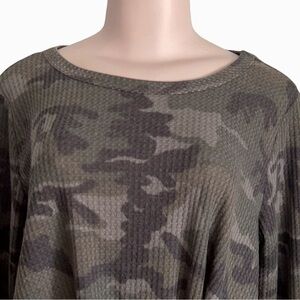 Fantastic Fawn Camo Print Waffle Knit Twist Tie Waist SZ S Green