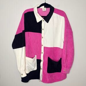 Fantastic Fawn Oversized Colorblock Corduroy Tunic Top Shacket Size Large Pink