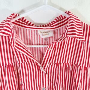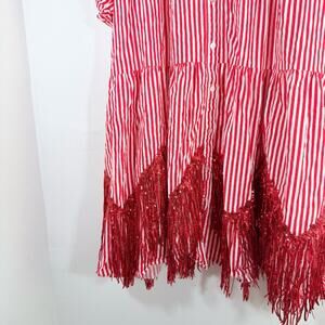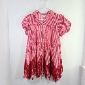 Fantastic Fawn Red White Stripe Sequin Tassel Fringe Shirt Dress Small College