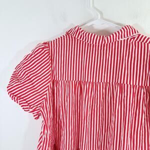 Red white stripe button front shirt dress with fun sequin fringe detail at hem.
