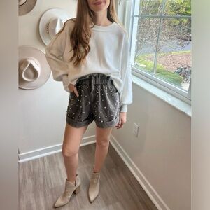 Fantastic Fawn Shorts Women’s Gray Corduroy Paper Bag Pearls
