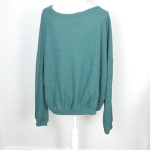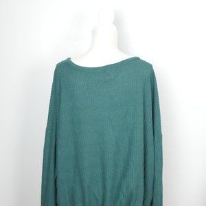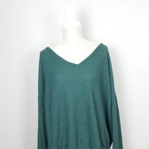 Fantastic Fawn Soft Forest Dark Green Waffle Knit Long Sleeve V Neck Top Large