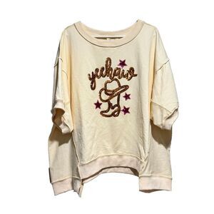 Fantastic Fawn Yeehaw Cowboy Hat Oversized Top Cream Large Short Sleeve Y2K