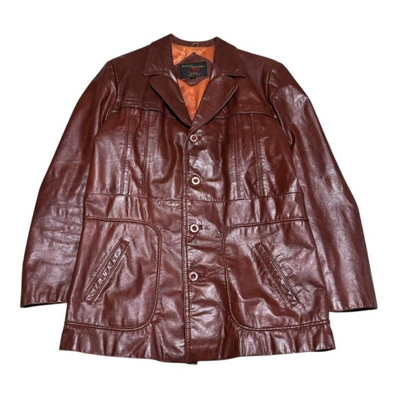 Fantastic International Men's Leather Jacket Size 40 Brown Lined Pockets Vintage
