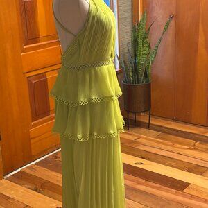 Cute and sexy at the same time, this unworn sundress has a strappy back, ruffles and pleats all in one dress. Clean and in excellent condition. Size 4