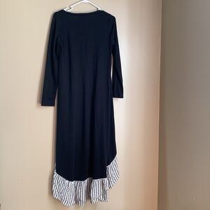 Fantastic fawn Black Hi Lo Maxi Dress w/Contrasting Striped Ruffled
