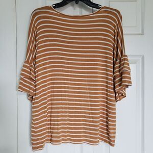 Fantastic Fawn Short Sleeve Stripe Shirt with Ruffle Sleeves Size Medium