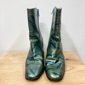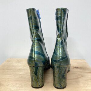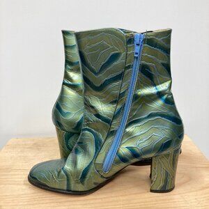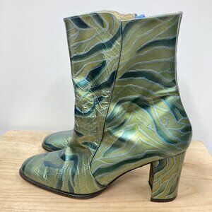 Fantasy Collection Laura Ankle Boots, Size 9, Green Patent Leather Zebra Print