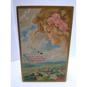 Fantasy Postcard Giant Blonde Goddess In Clouds Looks Down On Village CC No57
