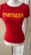 Vibrant red t-shirt featuring bold 'Fantasy' print. Perfect for casual outings.