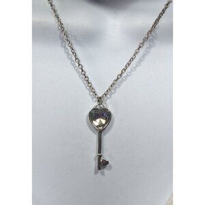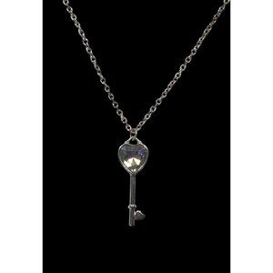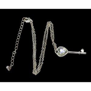 Fantasy Steampunk Heart Gemmed Key Silver Tone Pendant Necklace