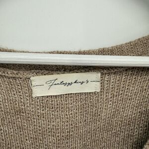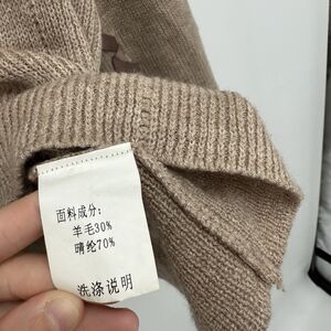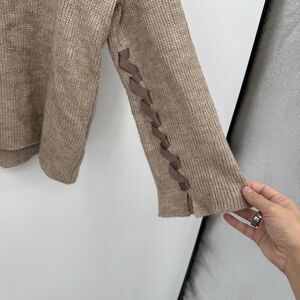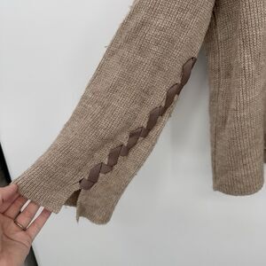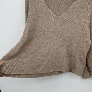 Fantasy Tan V Neckline Sweater Size Small Ribbon Detail Boho Small Wool Blend
