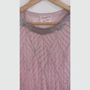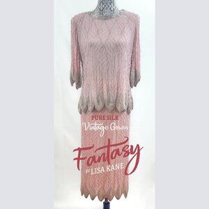 Fantasy by Lisa Kane, Silver-Beaded, Pink Pure Silk Chiffon Dress, Size 14-16