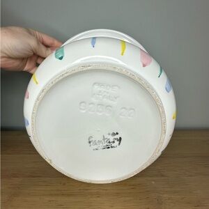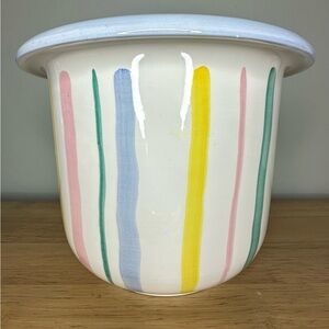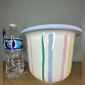 Beautiful Fantasy by Toscany hand painted in Italy white with multicolored stripes planter or large vase. Many possibilities for use!
